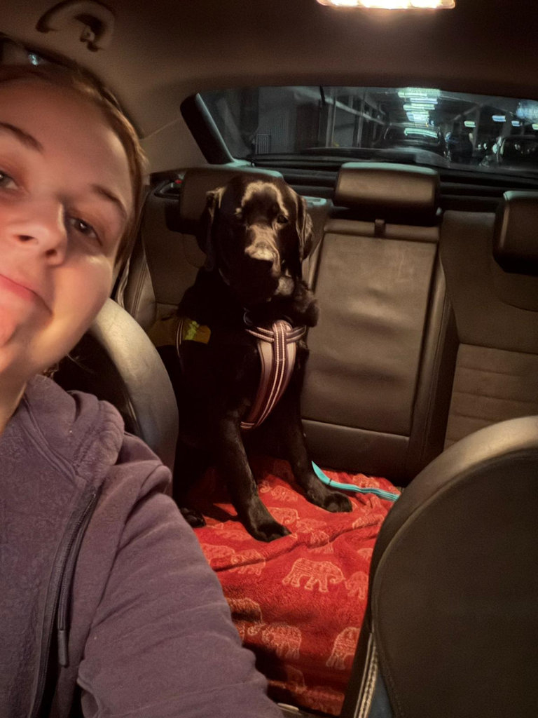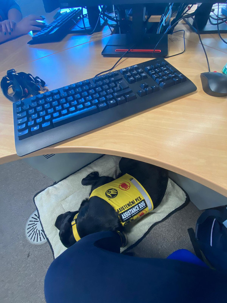 V září jsme se společně vrátily na univerzitu a Gina se velmi rychle znovu přizpůsobila. Během přednášek klidně odpočívá na své podložce pod stolem a její přítomnost mi výrazně pomáhá cítit se v klidu. Velmi náročné pro mě bylo vystoupení s matematickou prezentací, kdy byla Gina po mém boku. Veřejné vystupování je pro mě velmi stresující, ale s její podporou jsem dokázala lépe zvládnout úzkost a prezentace dopadla úspěšně. Gina velmi citlivě reaguje na změny mé nálady a včas mě upozorňuje, když se mi začíná zvyšovat úzkost, abych se mohla zklidnit.