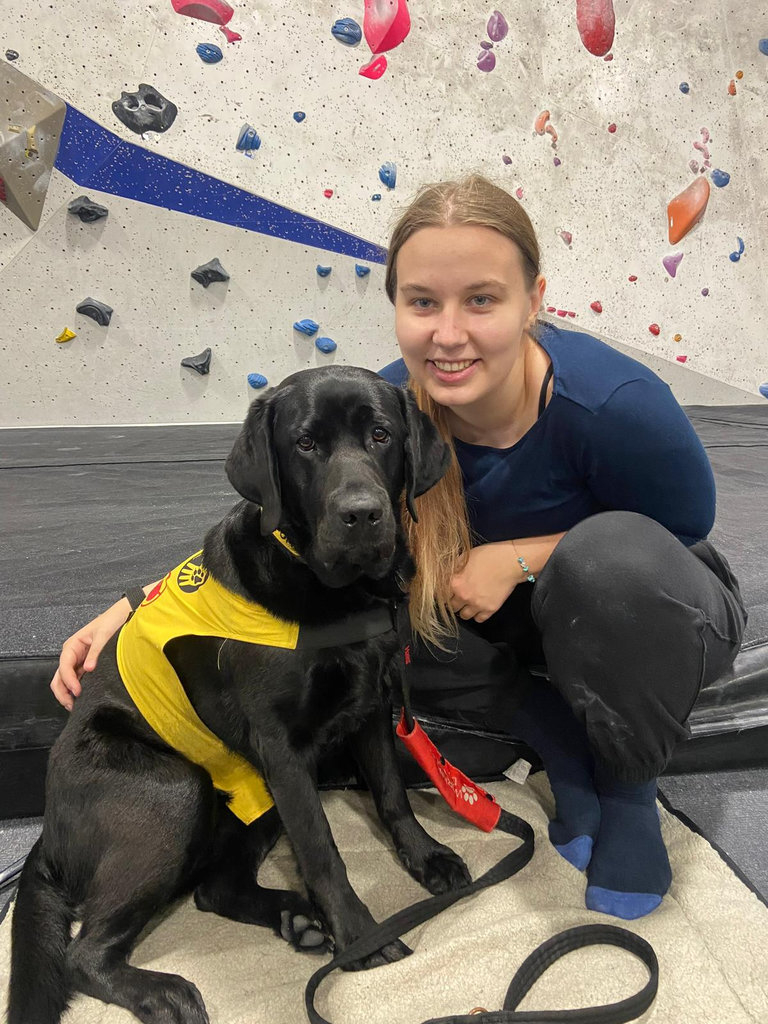 Kromě studia jsem pokračovala v dobrovolnictví v mládežnickém centru v lezecké místnosti. I v rušném prostředí se Gina chová klidně a soustředěně a lidé často říkají, jak je vychovaná a hodná. Díky pozitivní zpětné vazbě a její bezproblémové přítomnosti mi tam byla nabídnuta pracovní pozice, na kterou jsem velmi hrdá.