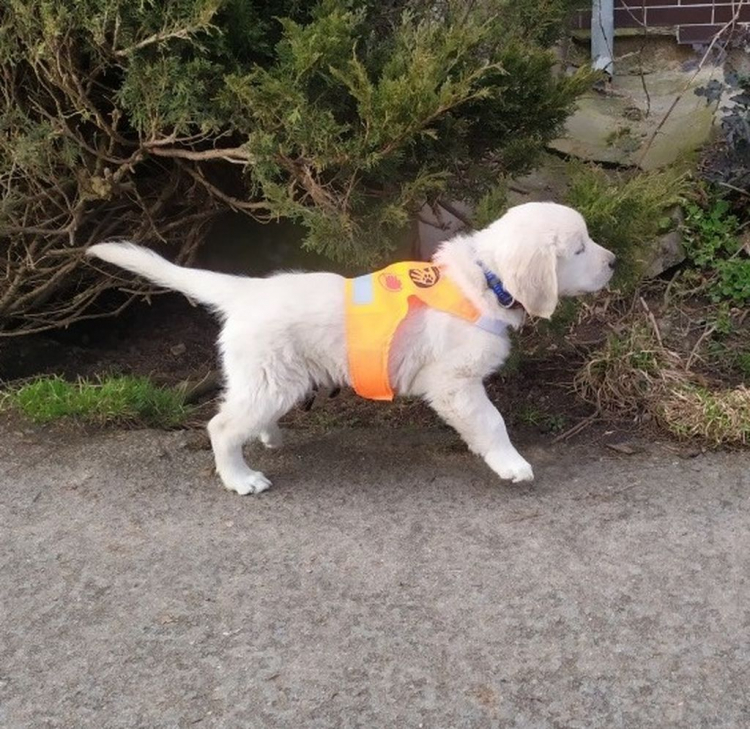 A co všechno musí udělat kluk jako já, abych byl správný asistenční pes. Musím se učit… učit se pomalu, důkladně a důsledně a tak jsme začali :):) nejdřív abych přišel když volají Armáníí, taky čistota na tom dlouhým co mě nepustí kam potřebuji a kam chci, ale dá se to, jde mi to čím dál líp, ale někdy se nepodaří… Nesmím honit kočky, kosáky ani listí, ale když je s nimi taková legrace. Babička se zlobí a nejvíc se zlobí, když sbírám co nesmím – to mi chutná nejvíc. Jak to vidí, nejdřív FUJ, když to neplivnu, tak mi strčí prst do pusy a to je pak fakt fuj. Jo, ještě musím nosit košilku, aby všichni viděli kdo jsem. Nemám tam, že jsem Armani, ale „Štěně ve výcviku“, taky aby mě nehladili, když se učím a pustili mě skoro všude. A o tom zase příště.