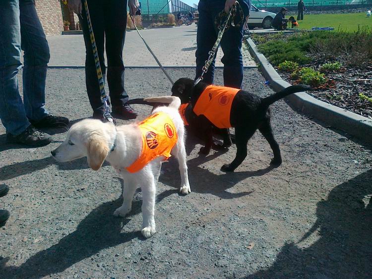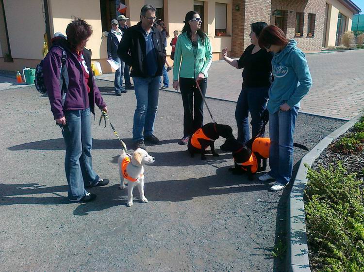 Cestou pěšky do práce se Avi nejen vyvenčí, ale zároveň si podél rušné komunikace zvyká na dopravní hluk, na kolemjdoucí lidi i psy. V práci se učí trpělivosti a aby vydržela klidně ležet a čekat až jí budu potřebovat. Párkrát za den jí hodím na zem tužku nebo jiný předmět a ona mi to s vrtícím ocáskem ochotně přinese. Beru si jí s sebou samozřejmě i do města na úřady, do banky nebo na poštu. Jakmile si všimne, že jí chci obléknout svítivou vestičku s logem Pomocných Tlapek, je jí hned jasné, že jí čeká nějaká zajímavá akce a s vrtícím ocáskem si mi sedne k noze. Na halti ohlávku se C.Avilut už tak přívětivě netváří, ale ochotně si jí nechá nasadit a můžeme vyrazit. Ať už pěšky nebo autem, Avi cestuje ráda.