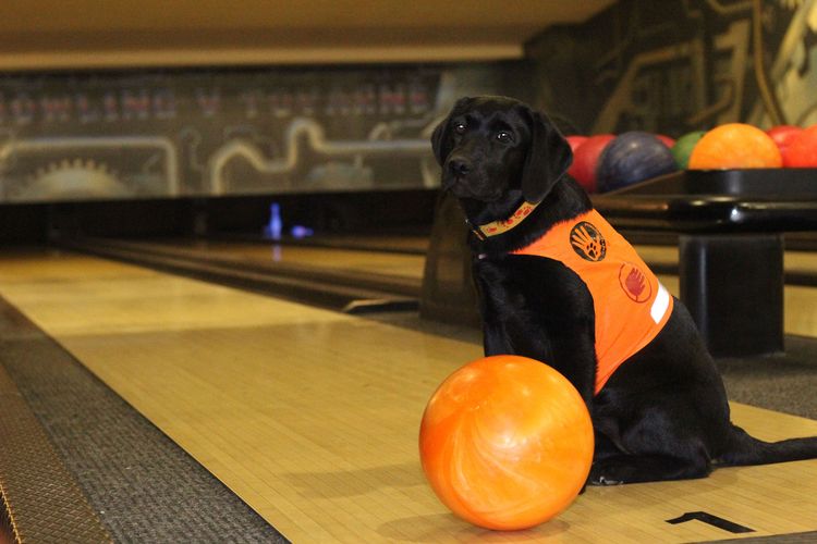 Štěňata ve výchově u adoptivních rodičů stráví rok. Cílem je, aby doprovázeli svého člověka všude. Ina zašla se svoji rodinou na bowling. I když její velikost bot neměli, barva koule, která ji ladila s košilkou, zde byla :)