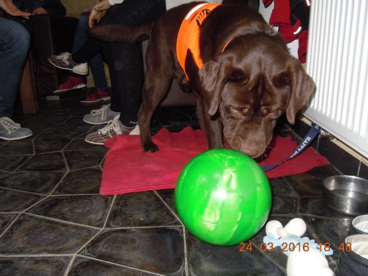 Naposledy jsme byli v plzeňském divadle Pluto. Při vstupu měla paní principálka Kiknčuková trošku obavy, aby Maxík nerušil ostatní diváky a chtěla, aby na nás počkal v autě. Vysvětlila jsem princip předvýchovy a poslání budoucího asisťáka a slíbila paní principálce, že si Maxíka při představení nikdo ani nevšimne. Pak jsme si mohli všichni sednout na svá místa. Maxík zalehl s plyšovým Šmoulou a skoro celé představení prospal. Přestože byl v divadle poprvé, choval se úplně vzorně. Myslím, že jsme paní principálku nezklamali a nikdo si na Maxíka nestěžoval.