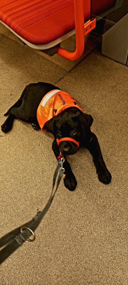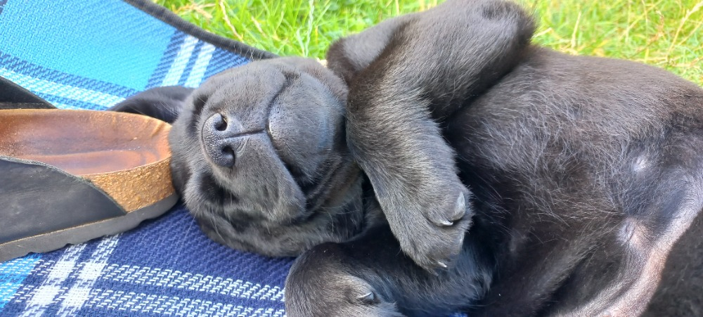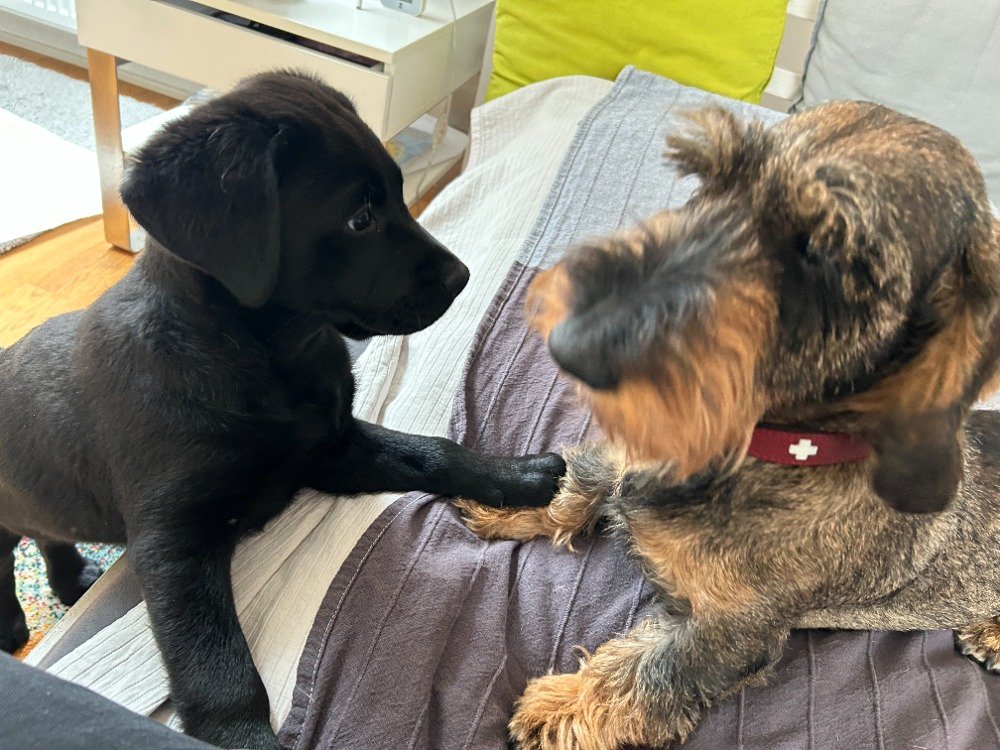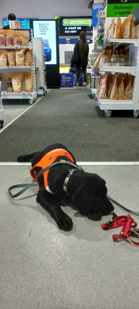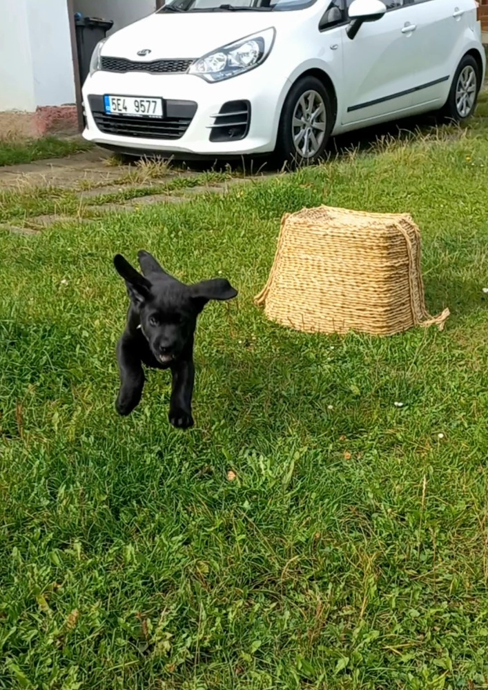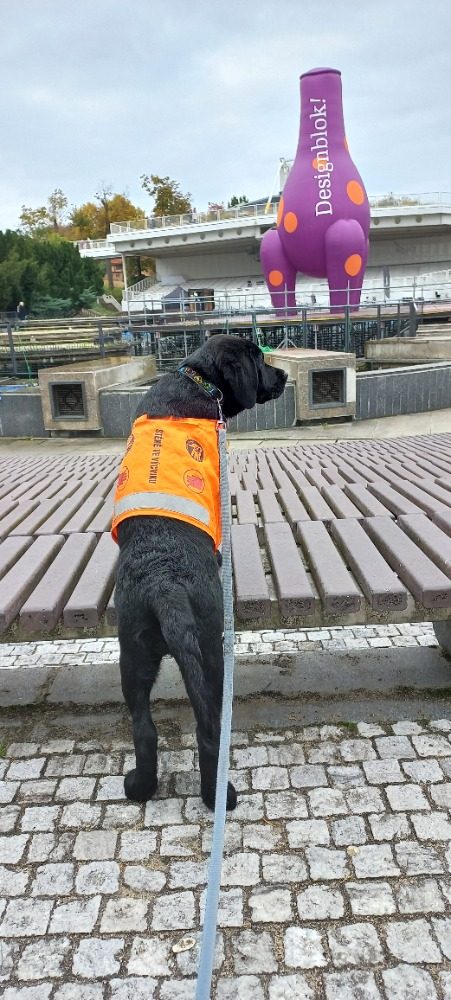 Poslední srpnový den vyrazila Fína ze Starého Plzence směr Praha se zastávkou u Chříče, kde jsme zůstali první dva týdny hlídat chalupu včetně ovcí a kocoura. Po dvou týdnech krásných výhledů a kratičkých procházek hurá do Prahy. Zde Fína poprvé vyrazila do kanceláře v Karlíně, jela metrem, autobusem či tramvají, šla přes rušnou křižovatku a pomalu si oťukávala další nástrahy města. Dnes po měsíci a půl už nastupuje sama na krátké jezdící pásy i schody, jezdí metrem jako ostřílená pražanda a chodí nakupovat do různých obchodů. Už s námi stihla rovněž vymést několik velkých akcí jako Dny architektury, Designblok či Signal festival. Navíc si vyzkoušela už i návštěvu v nemocnici v Motole, kde si jí personál skoro chtěl nechat. V práci nepřestáváme budit úsměvy či obdivné pohledy, jak je Fína vychovaná a vzorná. Naštěstí zůstávají momenty, kdy má i Fínka své chvilky, skryty dalším očím Občas se totiž to krásné 3 měsíční štěndo změní tu v oragutánka, tu v malou dračici nebo piraňku.