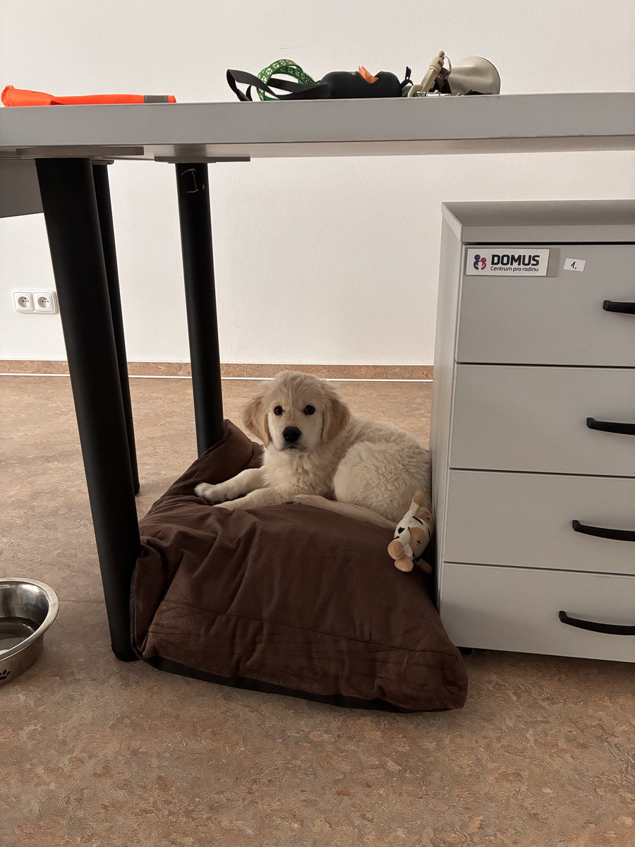 Každý den doprovázím svou paničku do práce – chvíli si tam pohraju a taky si pořádně odpočinu v mém pelíšku. Do práce jezdíme autem, což mám fakt rád — můžu totiž koukat na auta kolem, anebo se cestou prospat.